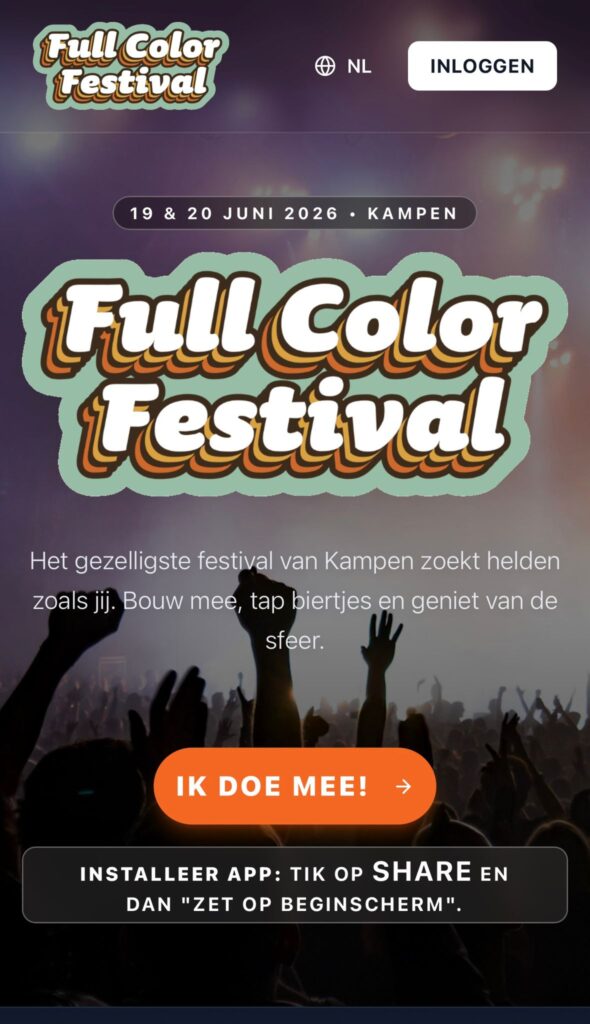 Dit jaar doen we het makkelijker dan ooit. Via onze nieuwe vrijwilligers-app heb je zelf de regie: app.fullcolorfestival.nl