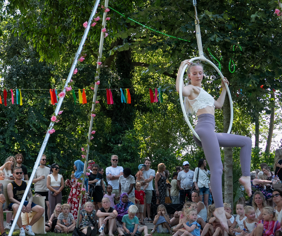 De Aerial Angels zijn terug met hun dromerige luchtacrobatiek! Geniet bij de Brute Biertjes van diverse dans acts in de Aerial Hoop. Op vrijdagavond en zaterdagmiddag.