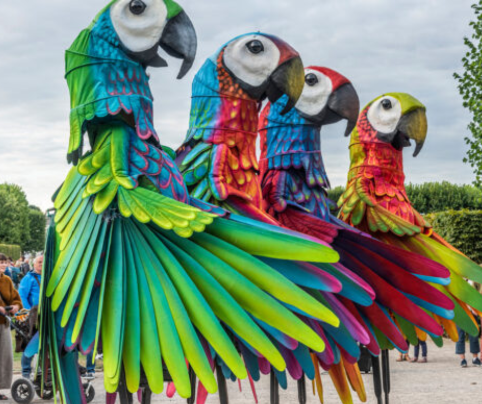 Pappagalli – kleurrijke steltenact