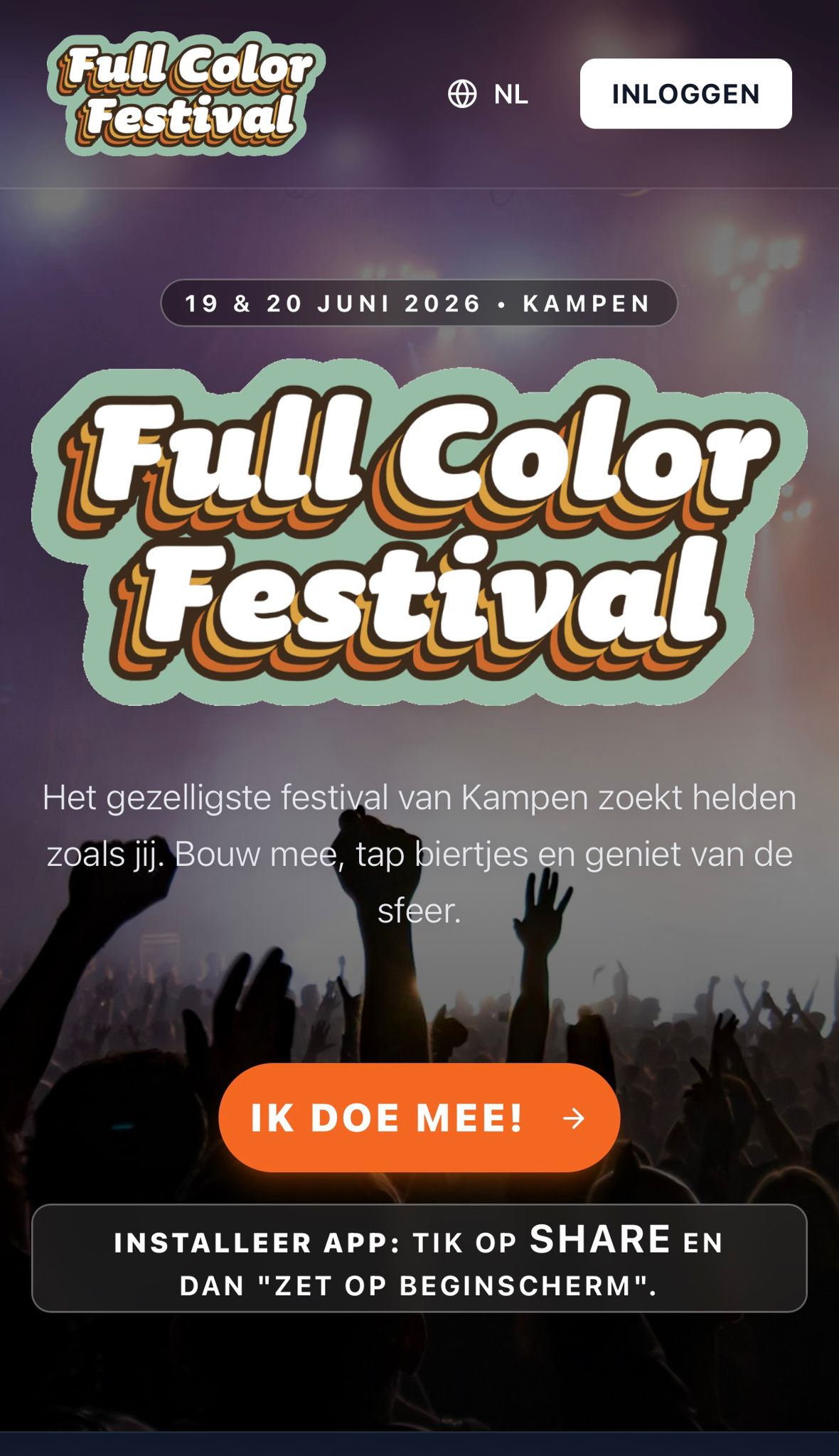 Heb je een paar uur tijd en wil je het Full Color Festival 100% meemaken: Meld je via dit formulier aan als vrijwilliger voor Full Color Festival 2026.